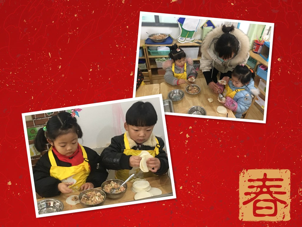 瞧!孩子们自己擀面皮,自己和馅。正像模像样的照着爸爸妈妈的样子,认真的包着饺子呢!