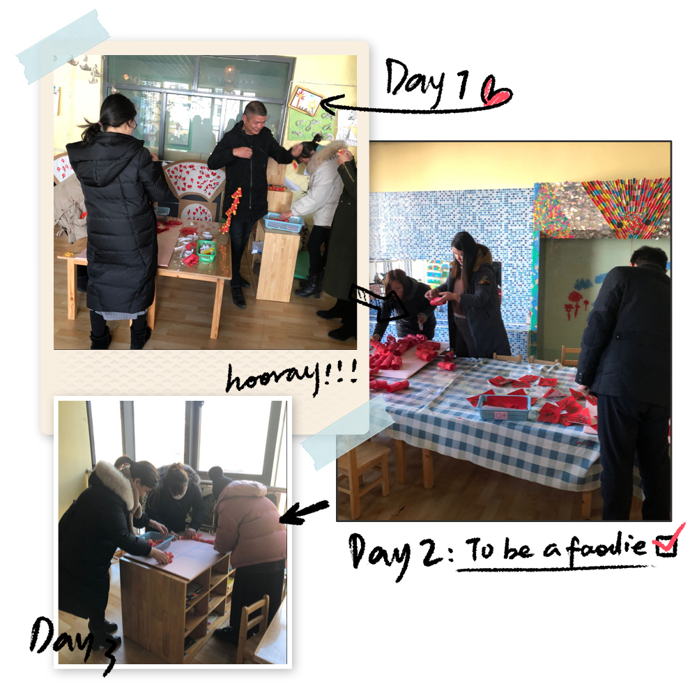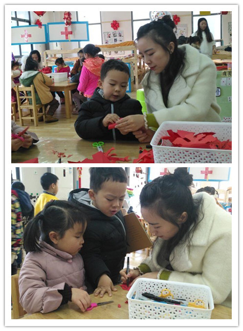 在家长助教的帮助下,孩子们用红色卡纸,制作成了一个个可爱的红灯笼,充满了新年的温暖氛围,快快让我们把它们挂起来吧!