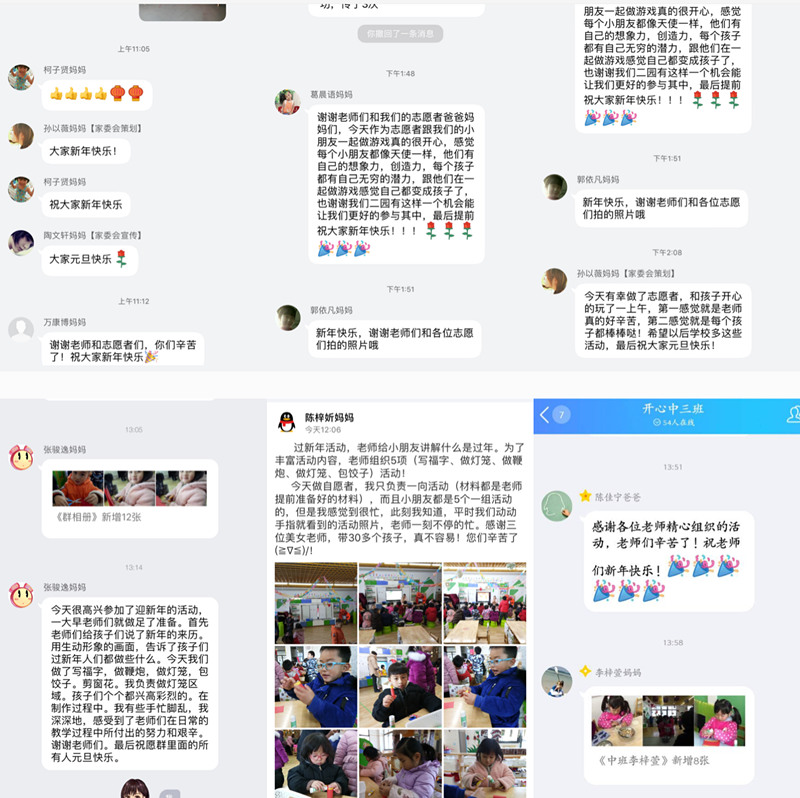 这次活动圆满结束,但每一个班级的微信群却久久不能平静,大家都在回味着这一次活动带来的欢乐,爸爸妈妈们发出了感慨,感谢老师们的精心策划,让孩子们过了一次意义非凡的元旦,同时也感慨着孩子们的成长……